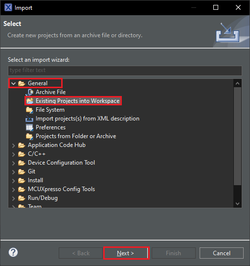 - 将项目导入 MCUXpresso。