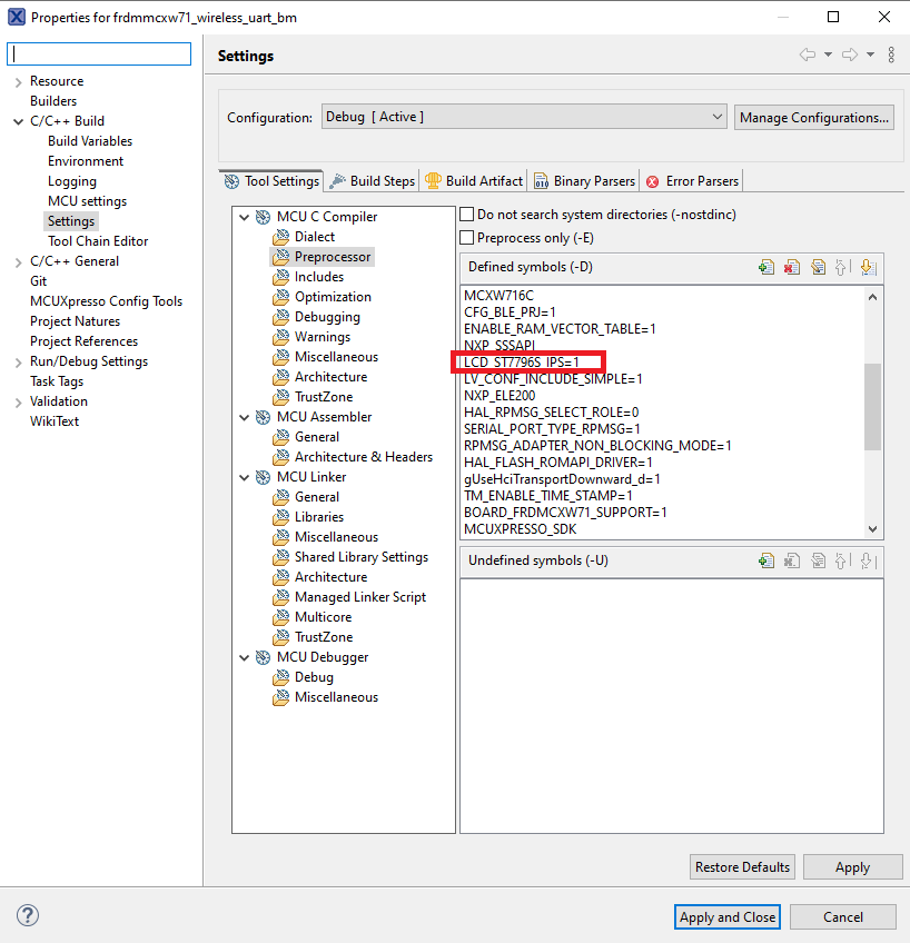 另外,确保 LCDST7796SIPS 宏设置为 1: