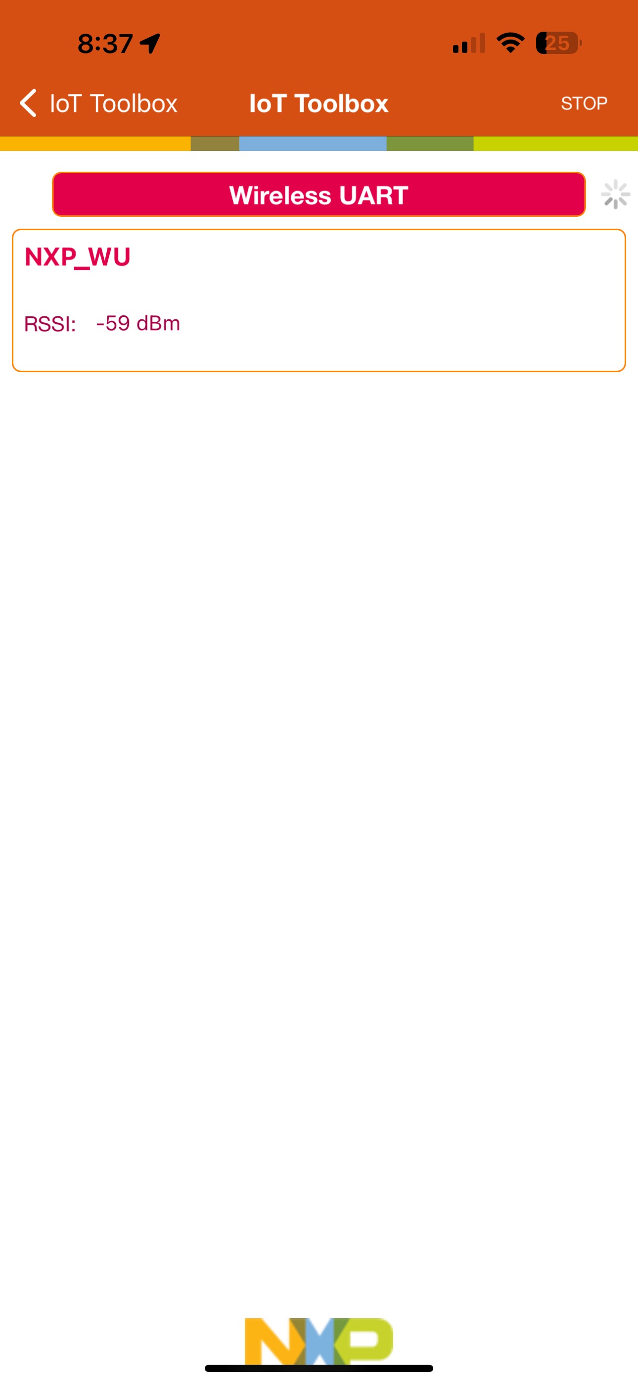 - 与 NXP_WU 设备建立连接。然后,您的智能手机上将显示无线 UART 界面。