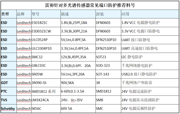 三、雷卯针对多光谱传感器电路静电浪涌防护指南