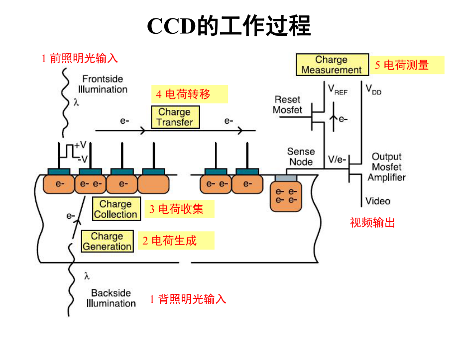 CCD(Charge-Coupled Device,电荷耦合器件)是利用光电效应与电荷转移机制实现光信号到电信号转换的核心器件。其工作流程为:光敏二极管阵列捕获光子→光电效应生成电子-空穴对→MOS电容势阱存储电荷→时钟脉冲驱动电荷逐单元转移→输出放大器转换为电压信号→模数转换生成数字图像。