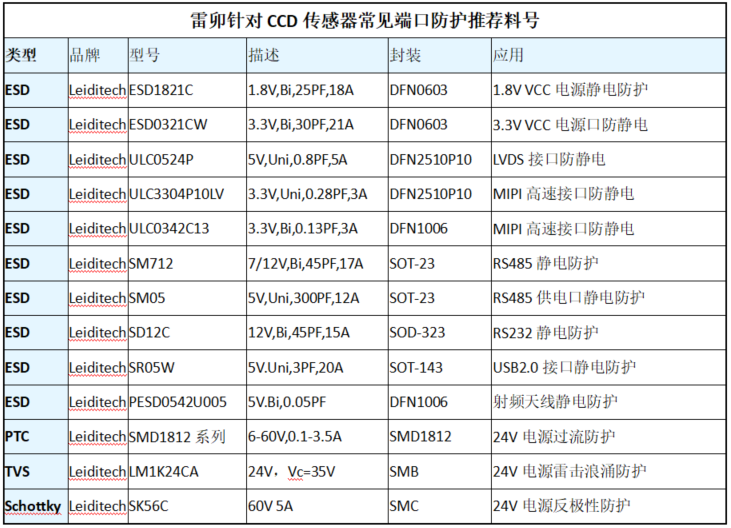 CCD 传感器在高精度工业视觉、航天设备等场景中,静电浪涌主要通过以下路径入侵:电源端口:工业电源(如 24V)易受雷击感应浪涌;数据接口:高速图像传输接口(如 Camera Link、LVDS);触发信号线:外部控制信号输入端口。