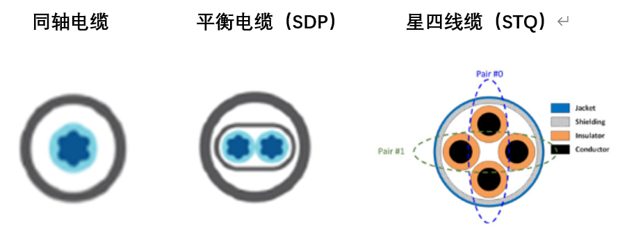 A-PHY 定义了以下三种不同的电缆拓扑结构,如下图所示