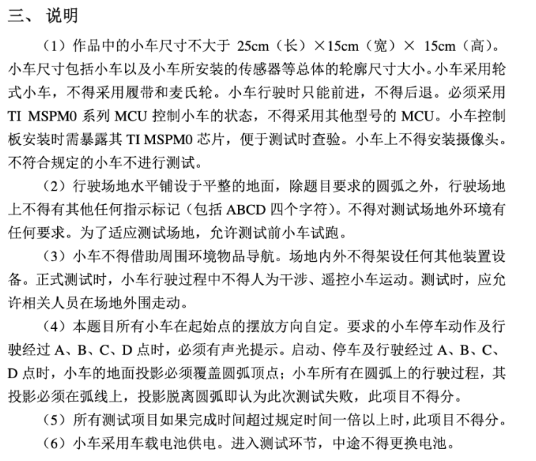- 电机驱动模块需要保证小车在直线和弯道行驶时的动力响应。由于题目禁止使用履带,推荐采用直流减速电机搭配编码器,以实现闭环速度控制。电机驱动芯片可选择DRV8833或TB6612等H桥驱动,支持PWM调速和正反转控制。编码器信号可通过主控的定时器捕获或外部中断读取,若资源不足,可采用分时复用策略,例如在直线行驶时优先处理速度环PID计算,进入弯道时切换至角度环控制。