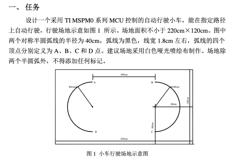 - 传感器模块的设计直接影响小车的路径识别和姿态控制。循迹部分可采用多路红外对管或灰度传感器,以检测场地上的黑色半圆弧线。为了提高检测精度,传感器应均匀分布在小车底部,并适当调整安装高度以避免环境光干扰。