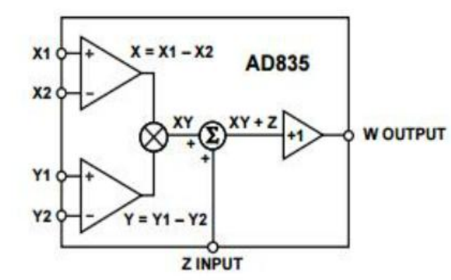 - 采用PDIP-8或者SOIC-8封装,能够完成W-XY十2功能,X和Y输入信号范围为-1~+1V,带宽为250MHz,在20ns内可稳定到满刻度的±0.1%,乘法器噪声为50nV/根号Hz,差分乘法器输入X和y、求和输入Z具有高的输入匪抗,输出引脚端W具有低的输出阻抗,输出电压范围为-2.5~+2.5V,可驱动负载电阻为25Q。其电源电压为±5V,电流消耗为25mA;工作温度范围为-40~+85℃。