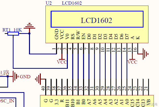 2.3 LCD1602字符型液晶显示屏电路设计