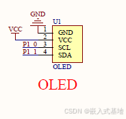 LCD 都需要背光,而 OLED 不需要,因为它是自发光的。这样同样的显示 OLED 效果要来得好一些。以目前的技术,OLED 的尺寸还难以大型化,但是分辨率确可以做到很高。在此我们使用的 是0.96寸OLED显示屏,该屏有以下特点: - 其具体电路原理图如下图所示: