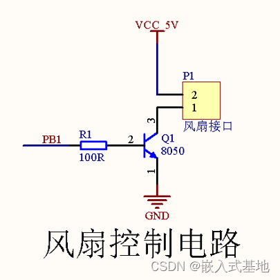 - 风扇控制电路使用NPN三极管对风扇进行控制