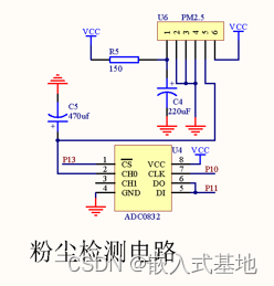 - 1、单片机作为主控芯片,由(GP2Y1010AU0F)粉尘传感器采集到信号,然后通过ADC0832将模拟信号转化为数字信号,传送给单片机读取并处理数据。