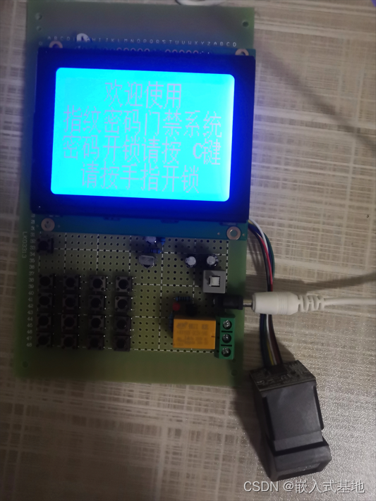 - 2.采用矩阵按键输入、12864液晶显示、继电器模拟开锁,有开锁指示灯。继电器有常开常闭触点可外接电磁锁等负载;