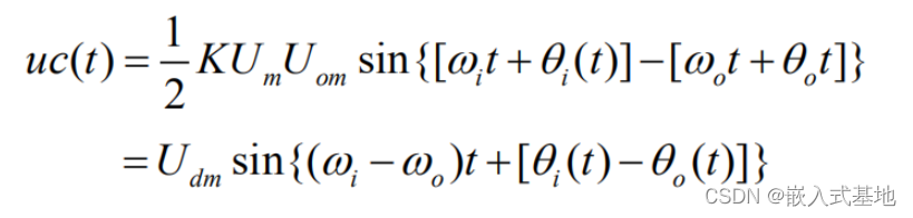低通滤波器(LF)的将上式 中的和频分量滤掉,剩下的差频分量作为压控振荡器的输入控制电压 Uc( t) 。即为: