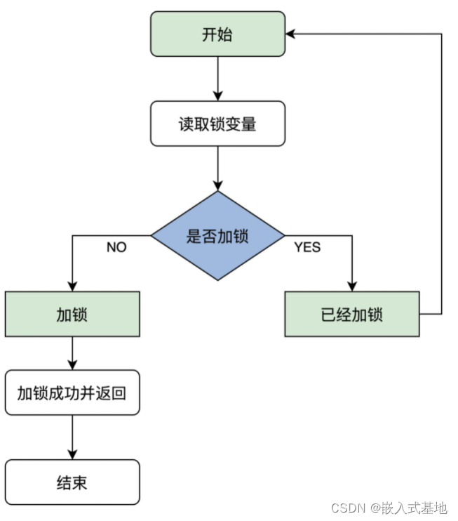 - 分配一个寄存器r值为1,交换r和lock的值;