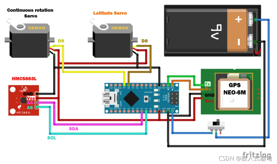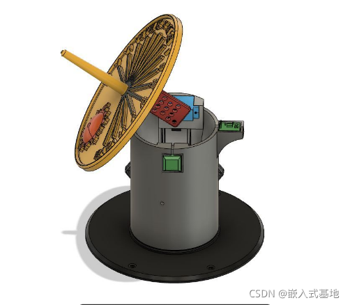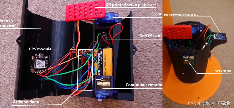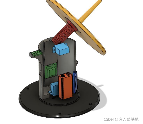 - 连续旋转伺服(我们在上一步中破解的那个)位于底部,将负责旋转整个日晷并找到南北方向。