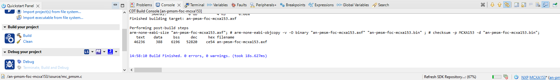 - 从 Git 存储库an-pmsm-foc-mcxa153下载代码。