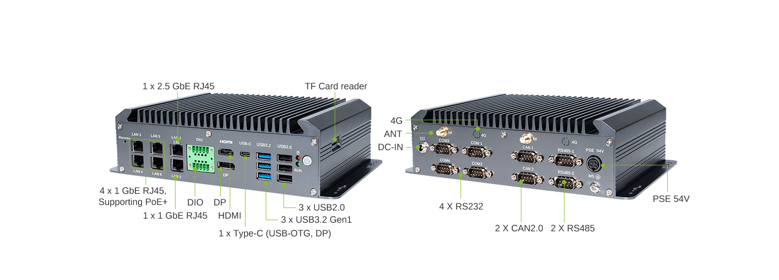 AF208支持英特尔Alder Lake-N平台,搭载N97、X7211E多核处理器,提供丰富I/O接口,包括多个网口、COM口和USB接口,可同时连接PLC控制器、视觉传感器、传送装置、机械臂控制系统等多样化设备,实现设备之间协同工作。它有效打通信息孤岛,实现生产设备数据的统一采集与集中管理,为流程优化奠定坚实基础。