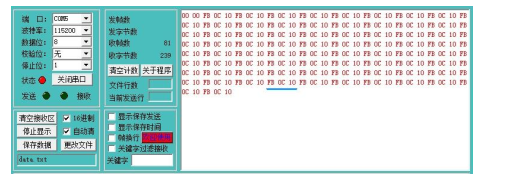 UART 串口波特率 115200, 发送的是 8 位十六进制数据。