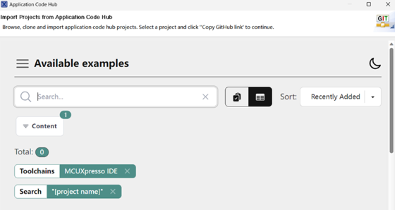 - 点击复制GitHub链接,MCUXpresso IDE将自动检索项目属性,然后单击下一步>。