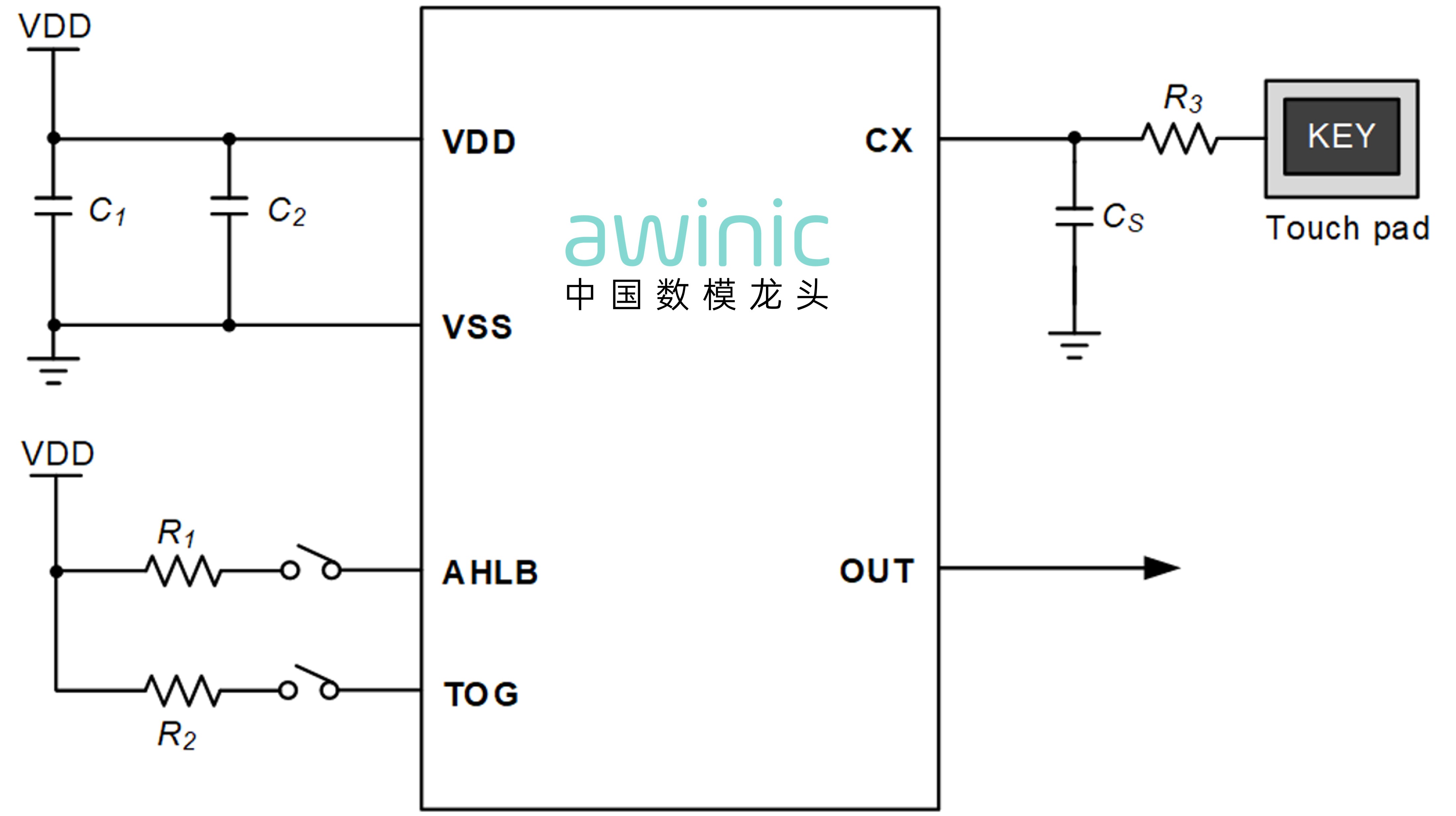 - 灵敏度由外部电容 (0~50pF) 调节