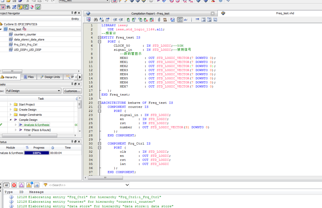 ·Freq_test:顶层模块,连接各功能模块,实现系统集成。