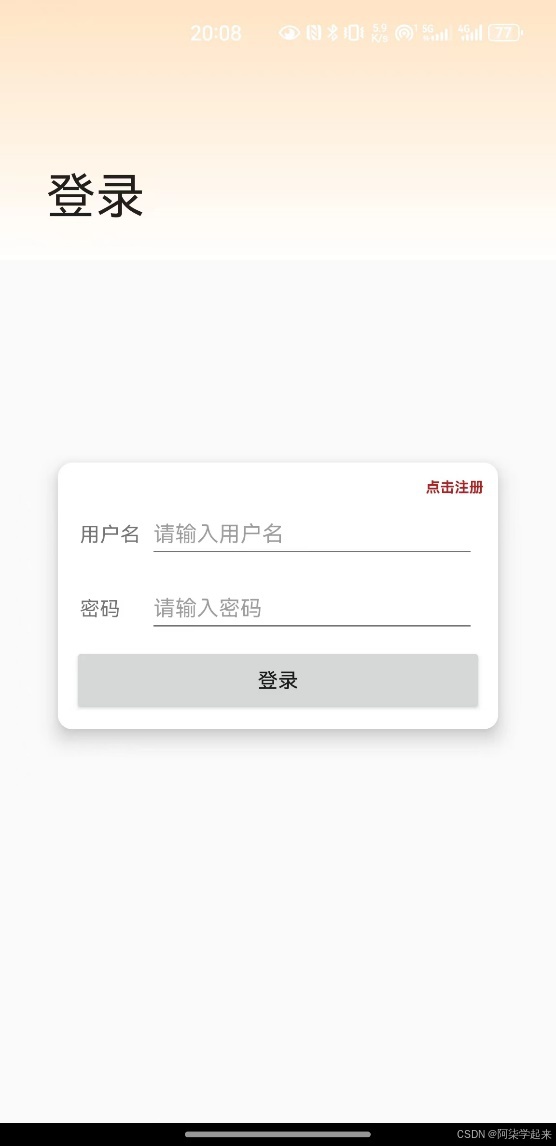 - 登录功能:第一次使用 app,需要输入用户姓名、年龄、性别、籍贯和联系方式,然后登录(注册的信息都保存到本地数据库中)。