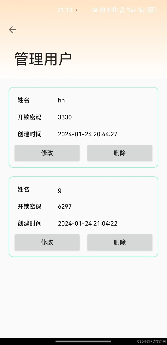 - 用户开锁权限设置:管理员可以查看用户信息,并赋予用户开锁的权限,只有被授权过的用户才能开锁成功。