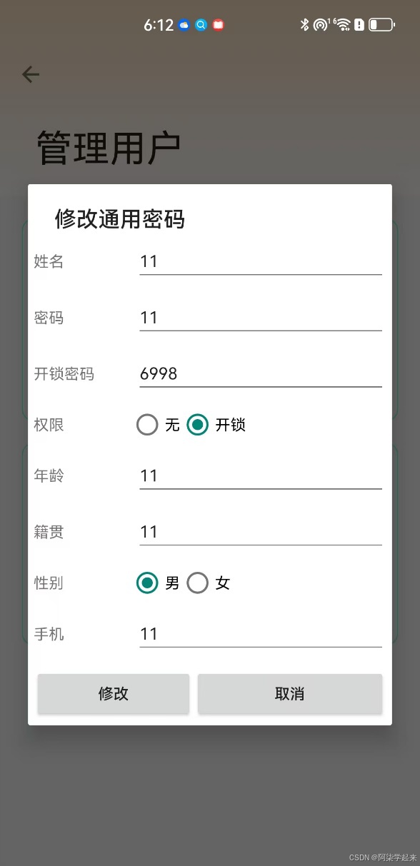 - 密码管理功能:管理员可以对密码进行修改和查询,普通用户只有输入密码进行开锁的功能。