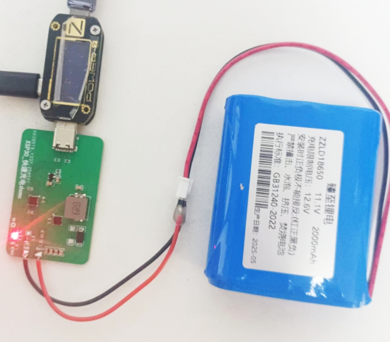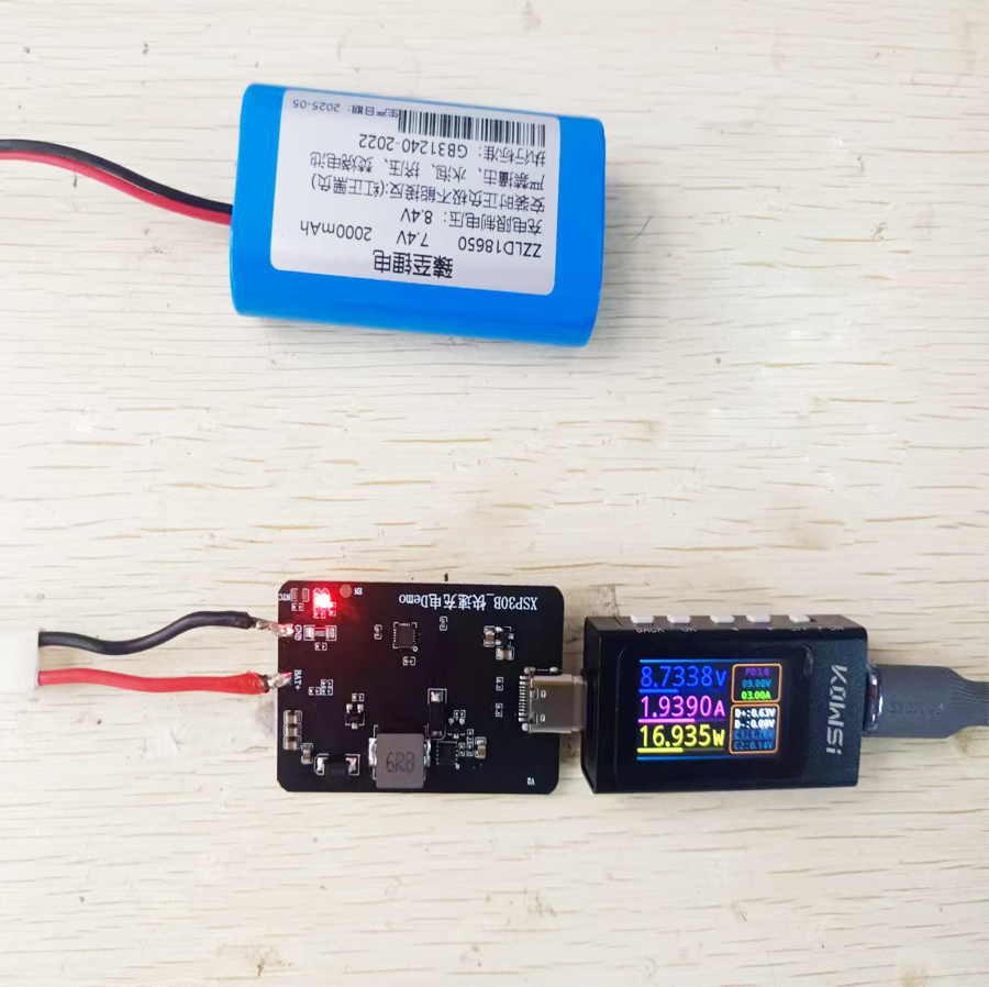 使用XSP30B电路给2串7.4V容量为5200mAh锂电池充电,使用PD充电器,充电电流最大1.9A,充满电7.26V 充满电只需4小时左右