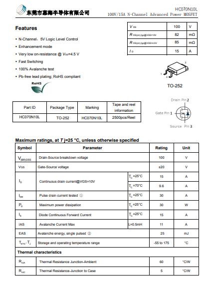 在常见的电子照明系统中,功率半导体器件承担着关键的开关与驱动任务。以 HC070N10L 为例,这是一款 N 沟道增强型功率场效应晶体管,适用于中低压、中等电流的工作环境,常见于各类照明应用。