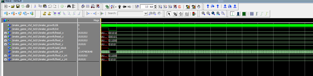 ·Snake_grow.vhd:食物位置与增长控制,包含伪随机数生成与吃食检测。