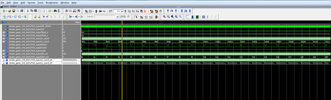 ·snake.vhd:核心游戏逻辑,维护蛇身数组、移动与转向逻辑、碰撞检测与增长处理。