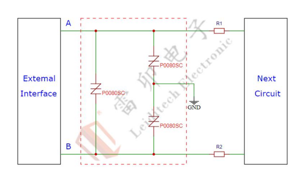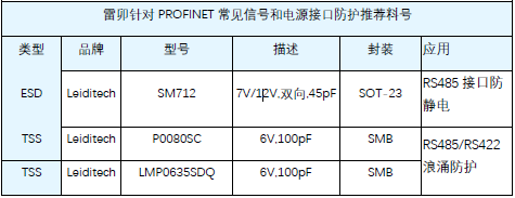 2. RS485 辅助接口(设备配置 / 诊断)雷卯电子采用P0080SC TSS并联于 A/B 信号线以及信号线与地之间,TSS反应时间为ns级,既可防浪涌,又可防静电,且保证信号完整性.满足IEC61000-4-2,静电等级4,接触放电±8kV,空气放电±15kV; IEC61000-4-5 浪涌10/700μs,±6KV;