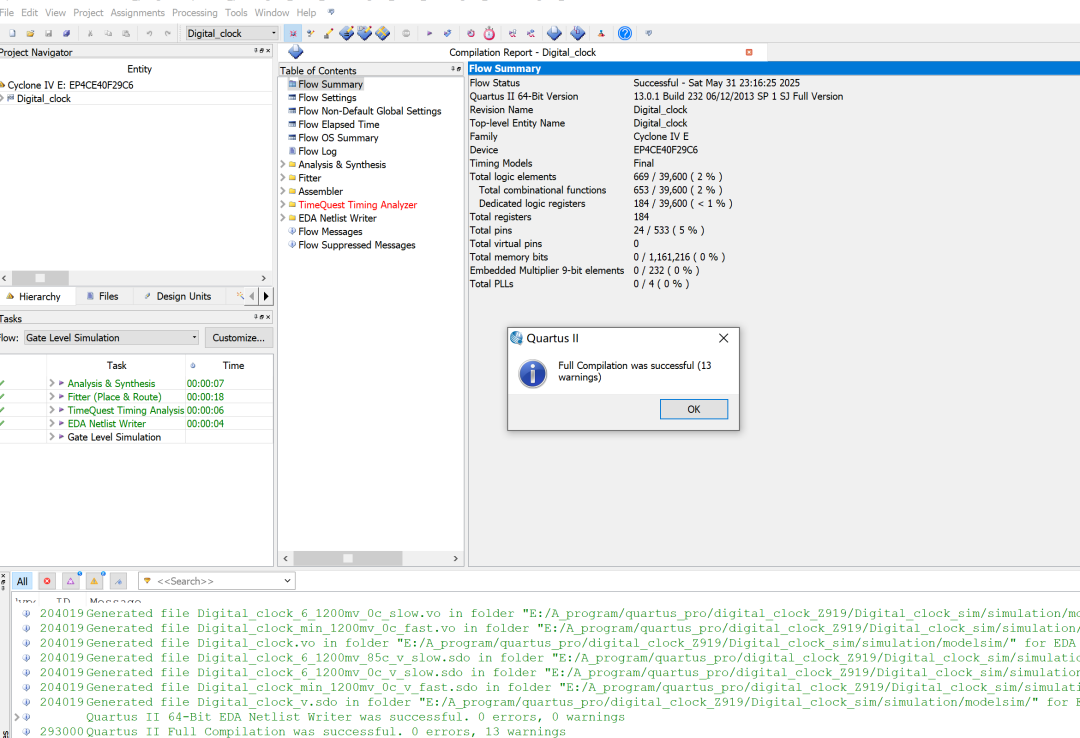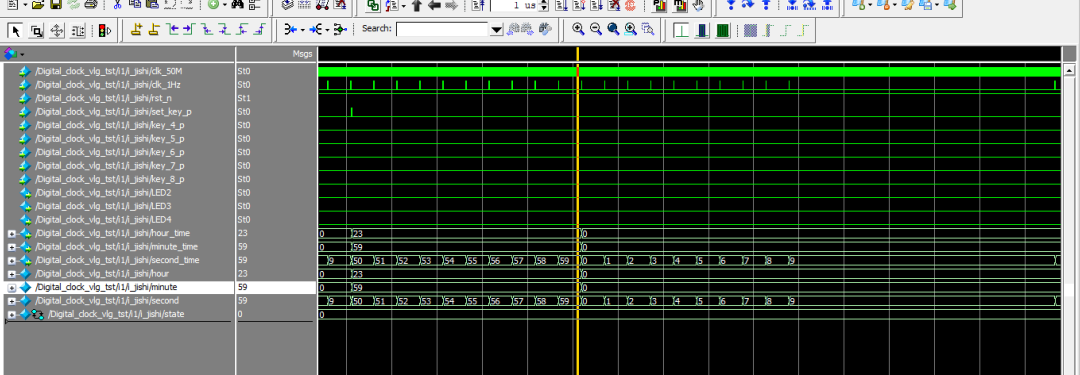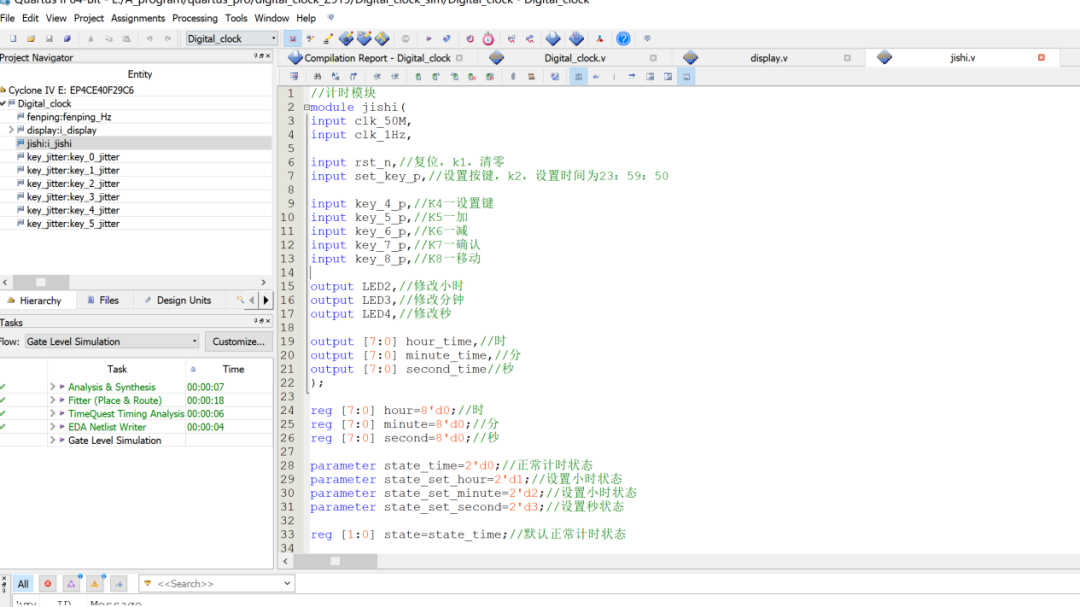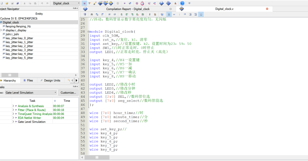 设计一个数字电子钟,并用Quartus/Modelsim进行仿真,将结果下载到EDA