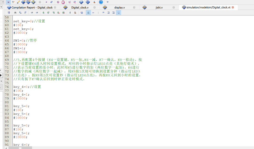 //设计一个数字电子钟,并用Quartus/Modelsim进行仿真,将结果下载到EDA