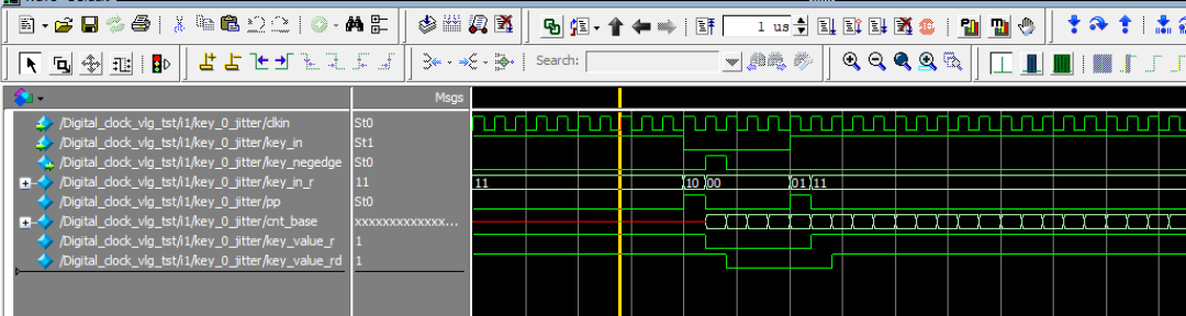 注意:为了测试方便,初始时间设置为23:59:50;按键中需要考虑按键的去