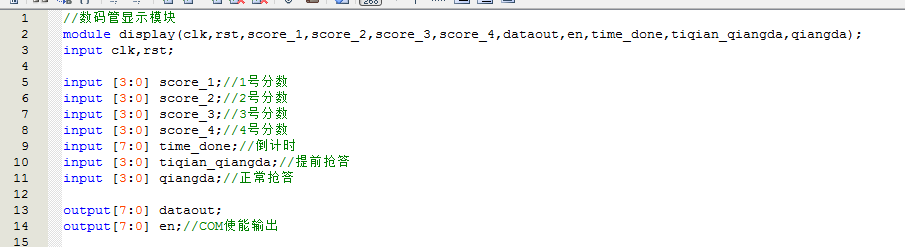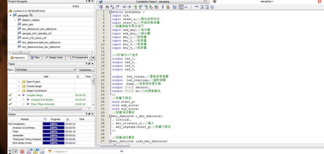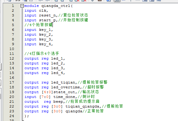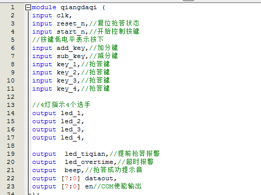 名称:基于FPGA的电子抢答器的设计Verilog代码Quartus仿真