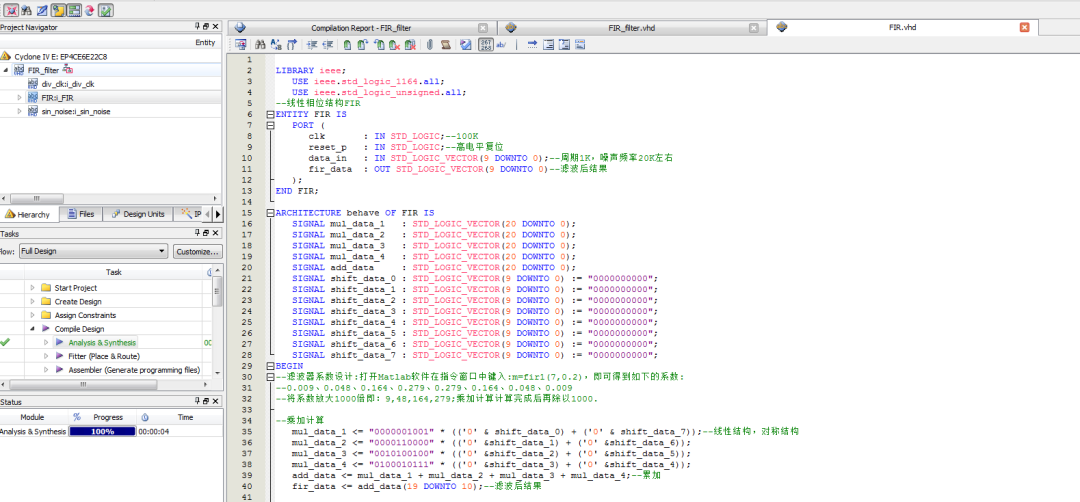 名称:基于FPGA的FIR数字滤波器的设计Verilog代码Quartus仿真