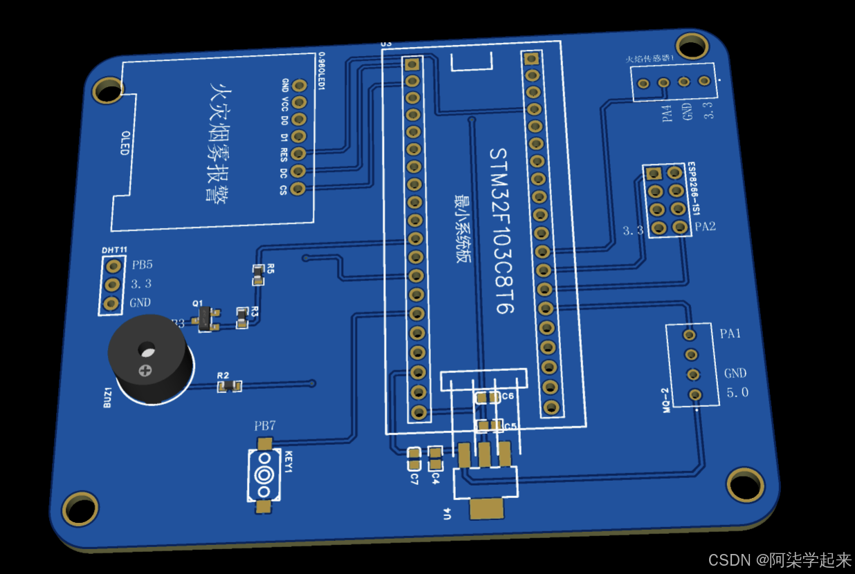 摘要:本文介绍了一个基于ESP8266的物联网监测系统设计方案,系统通过传感器采集温湿度、烟雾浓度和火焰状态数据,并通过OLED显示屏实时显示。当数据超过阈值时,系统会触发声光报警(LED灯和蜂鸣器)。硬件端采用自动组网和断网重连机制,通过2.4GHz WiFi(热点NET/密码12345678)连接云平台。APP端可查看传感器数据、修改阈值、控制蜂鸣器状态,并支持数据存储与查询。文章提供了原理图、PCB设计、实物效果和演示视频链接,但未包含具体代码,需要者可联系作者获取。系统完整功能演示可参考提供的视频资料。