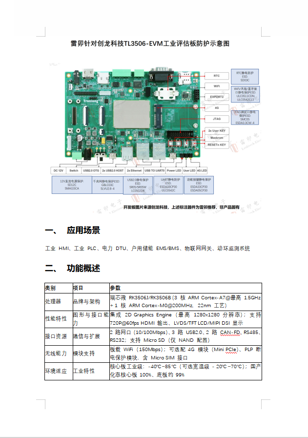 雷卯针对创龙科技TL3506-EVM工业评估板防雷防静电方案.docx