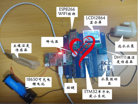 1.在本地通过 LCD 显示屏显示土壤湿度、环境温湿度数据以及浇水状态等信息。