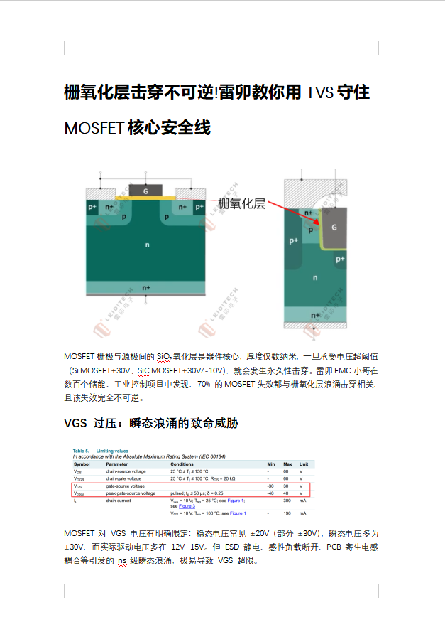 20251128----栅氧化层击穿不可逆!雷卯教你用TVS守住MOSFET核心安全线----王博(4).docx