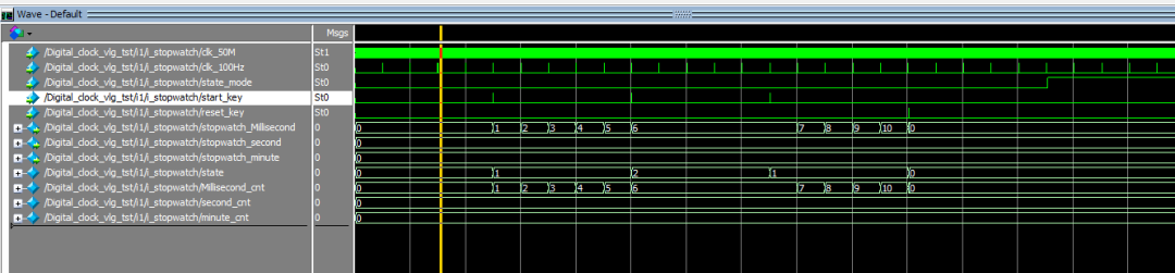 2.秒表模块:实现正计时功能,支持启动、暂停、复位操作