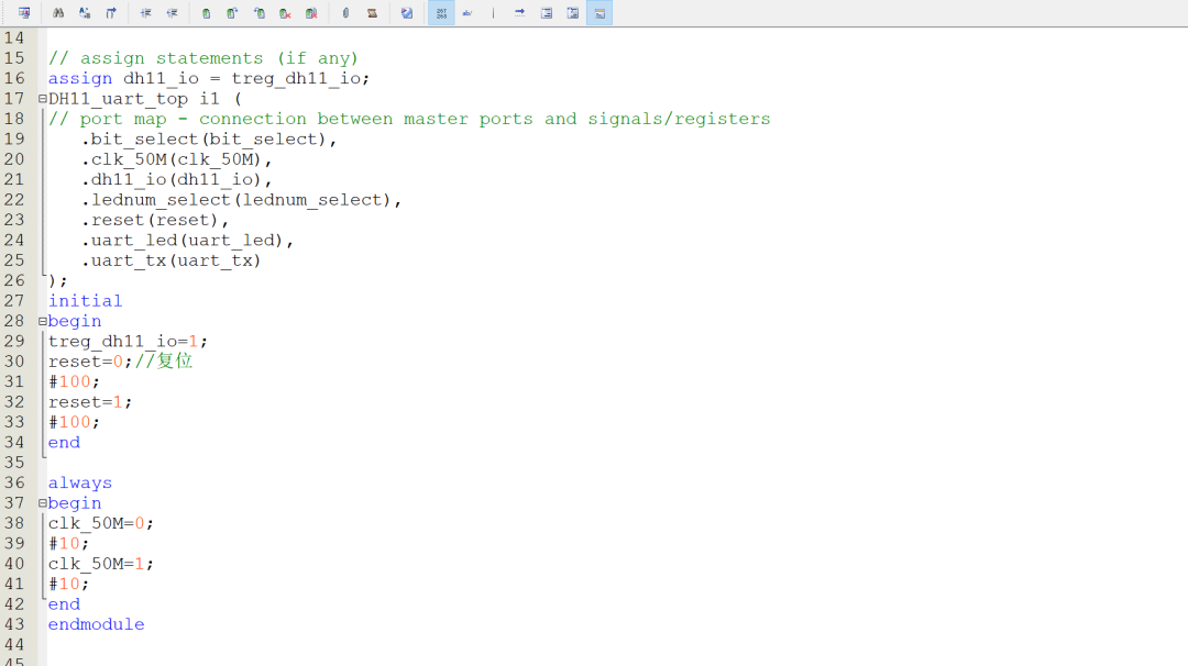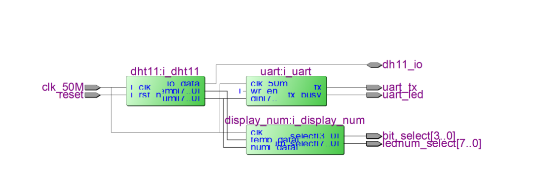 1.DH11_uart_top.v:顶层模块,负责模块间连接和数据路由
