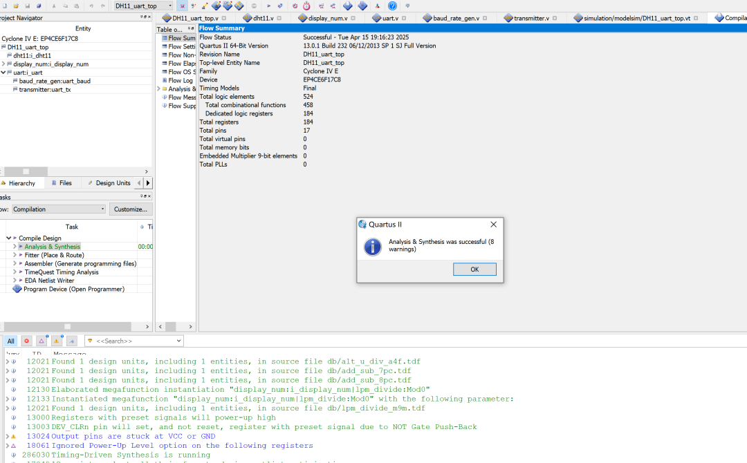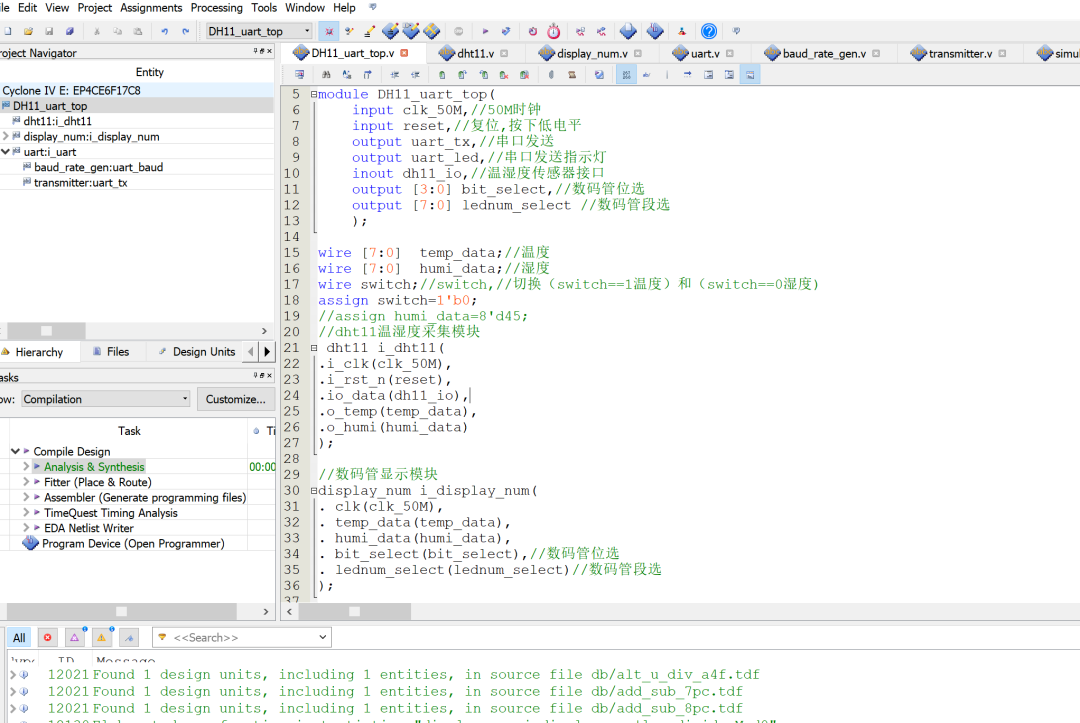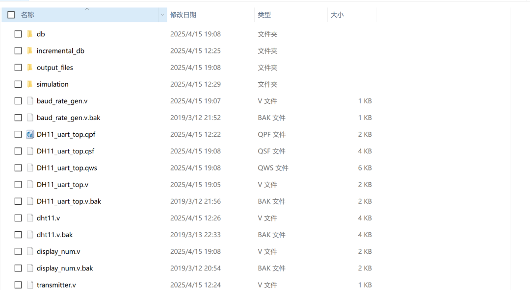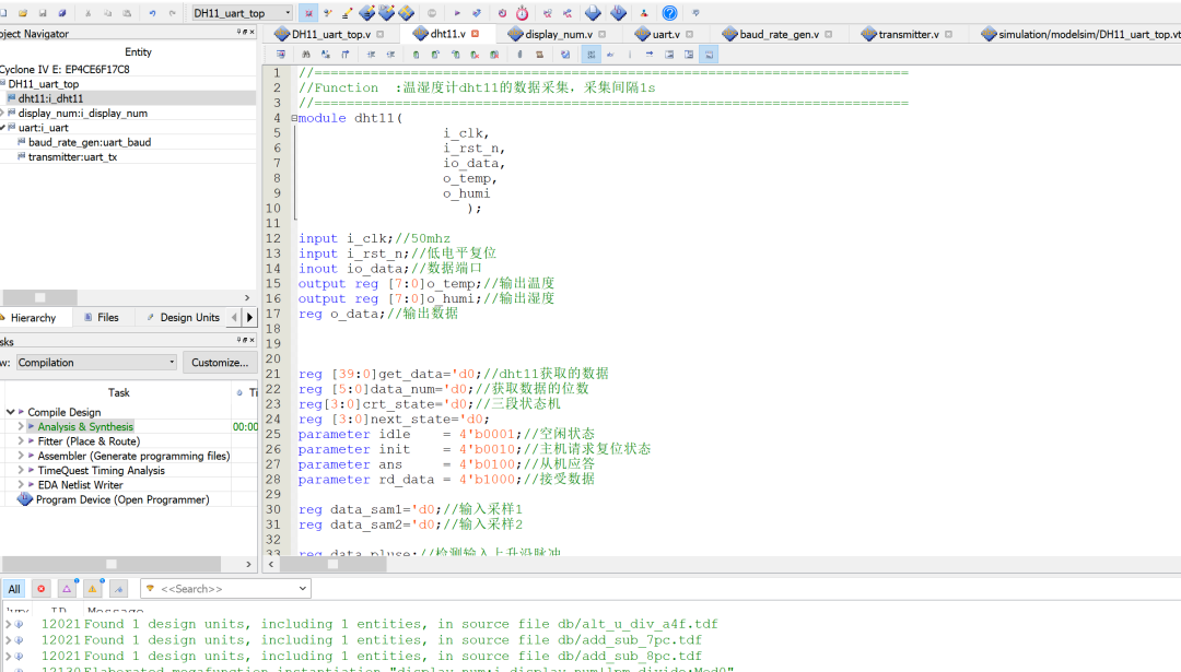 名称: DHT11温湿度采集UART传输系统的设计Verilog代码Quartus Spirit_V4开发板