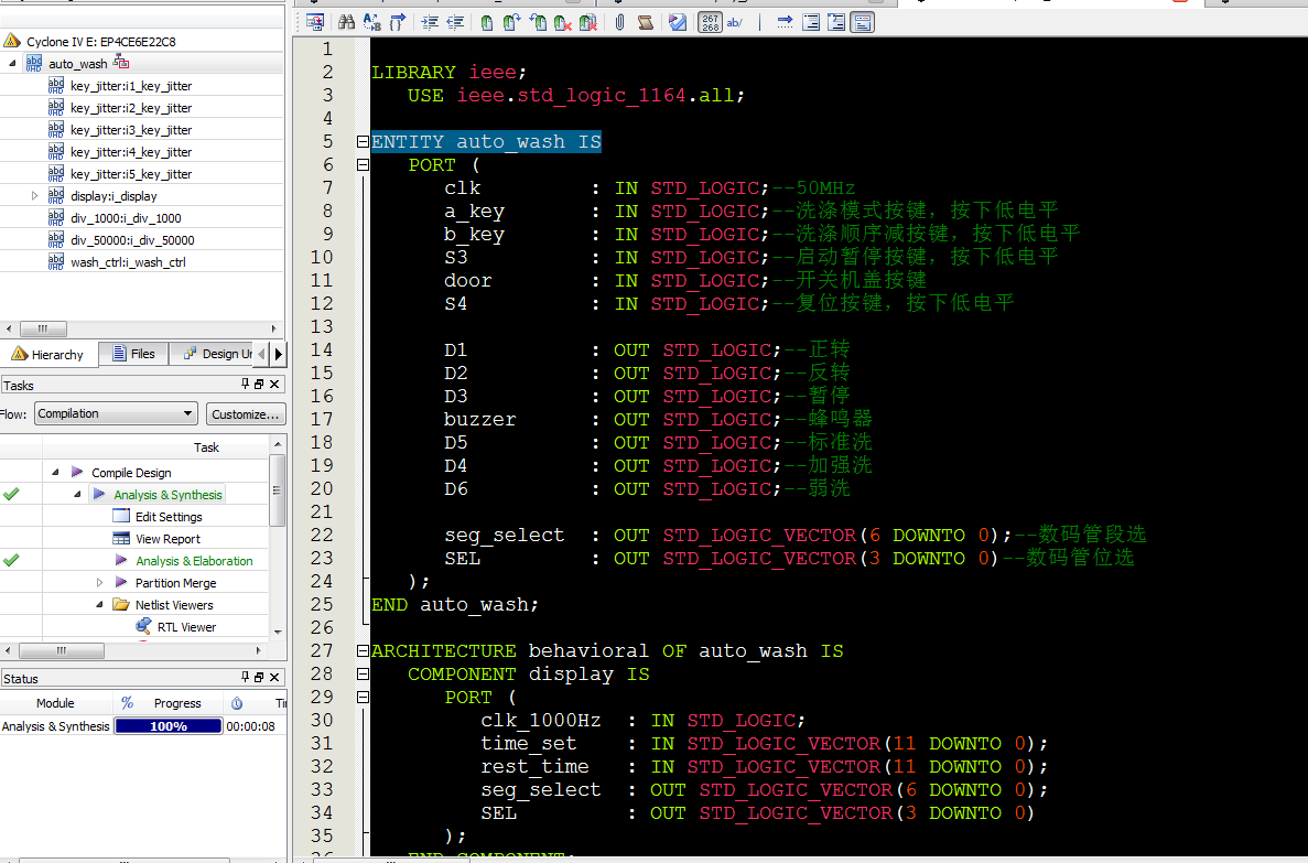 1.auto_wash.vhd:顶层模块,集成所有功能模块