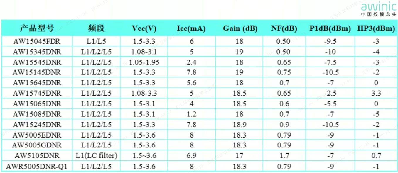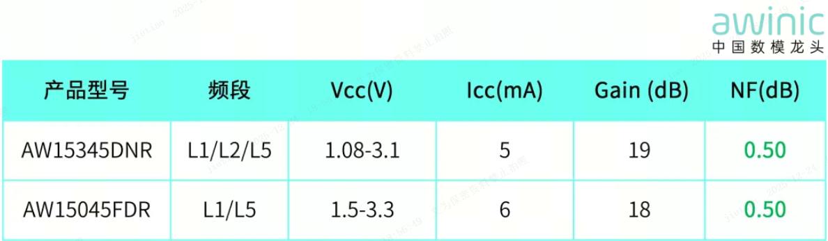 GNSS LNA作为定位系统性能的核心,其性能直接定义了自动驾驶、物联网等新兴领域的定位精度高度。面对持续攀升的高性能需求,科学选型与优化设计是实现精准定位的关键。数模龙头艾为电子始终以技术为核心深耕迭代,用更卓越的产品赋能全场景应用。以下为艾为电子全系列GNSS LNA产品选型表,后续重磅新品,敬请持续关注!