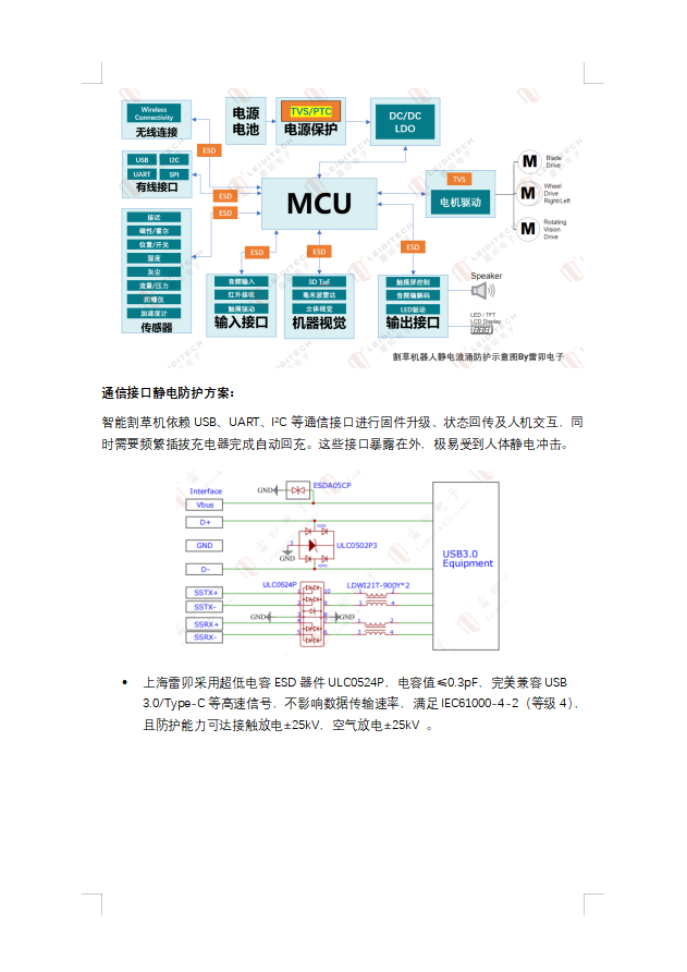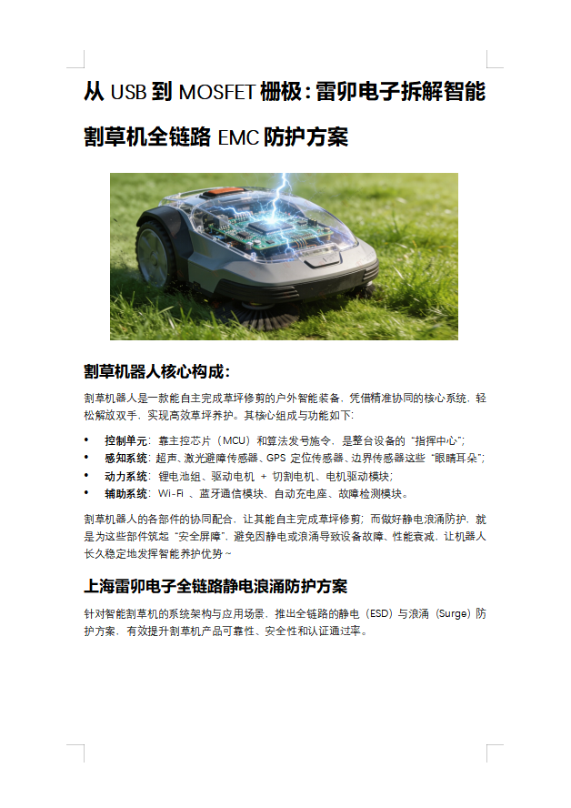 从USB到MOSFET栅极:雷卯电子拆解智能割草机全链路EMC防护方案