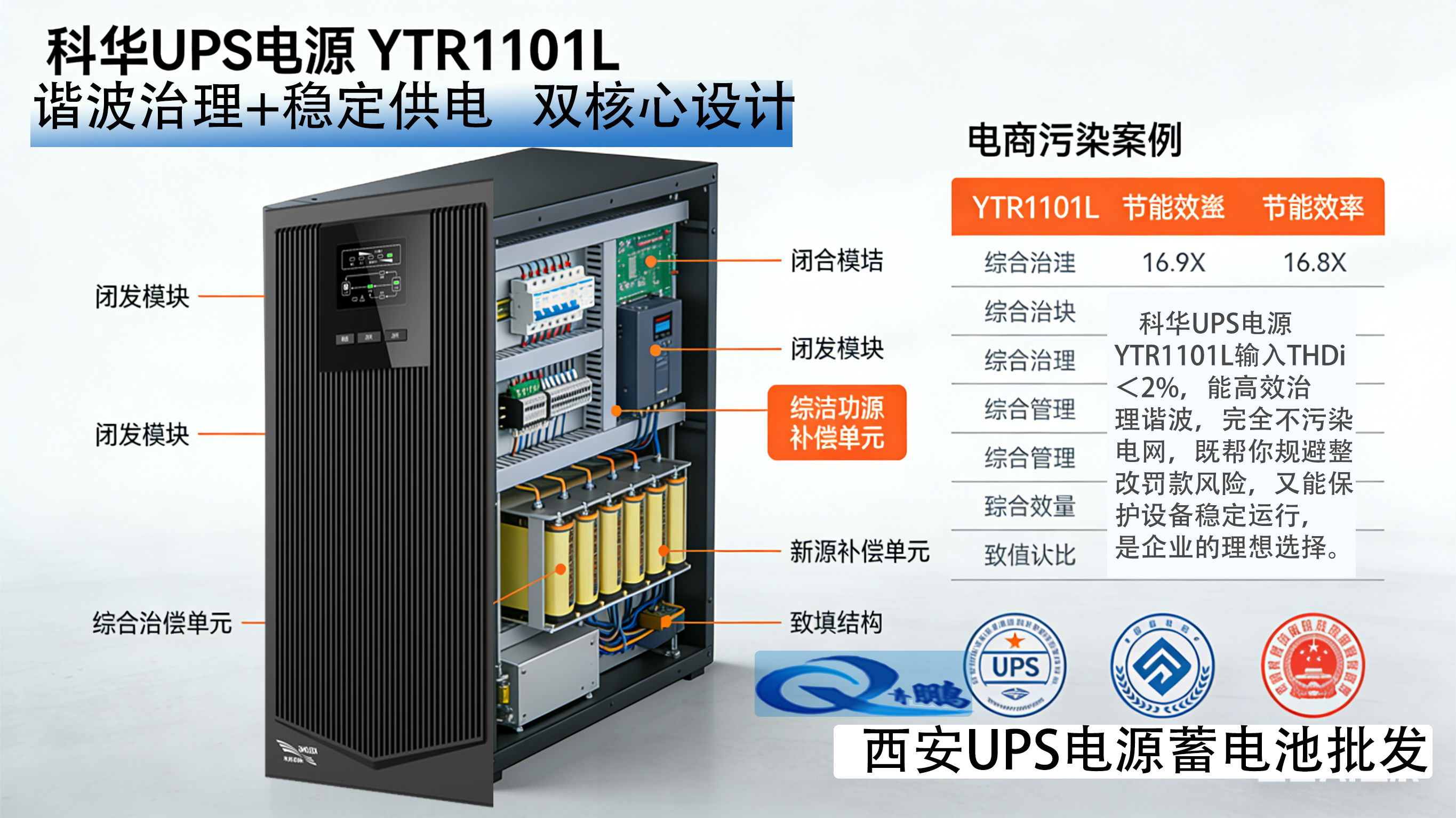 西安青鹏UPS电源蓄电池批发的刘元代理销售科华UPS电源YTR1101L遇到:电网检查时被查出“谐波污染超标”,不仅要交罚款,还得花大价钱整改;车间里的精密设备总莫名故障,电工排查半天找不到原因,最后发现是谐波干扰导致的;甚至周边企业因为电网谐波问题,和自家产生用电纠纷!我是西安青鹏UPS电源蓄电池批发的刘元,在西安做这行10年,太清楚谐波污染对企业的危害了!很多人不知道,普通UPS电源就是重要的谐波污染源之一,而今天给大家推荐的科华UPS电源YTR1101L,就是一款“电网净化神器”——输入THDi<2%,能高效治理谐波,完全不污染电网!这篇文案就把YTR1101L的谐波治理核心优势、详情参数、续航配置和西安本地真实案例讲透,帮你轻松避开谐波坑,省心又省钱!