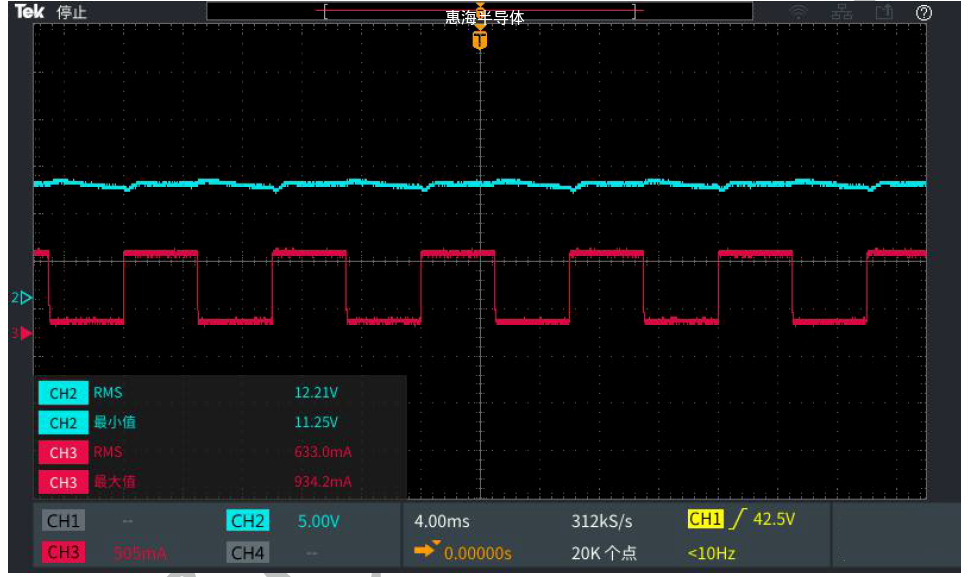 CH2:输出电压 CH3:输出电流
