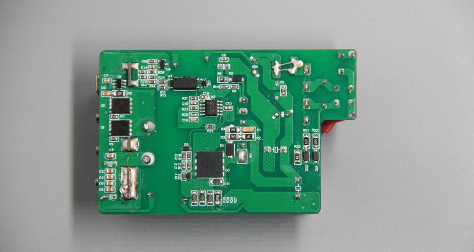 PCBA背面采用了合理的布局设计,通过使用CX7801初级主控芯片外驱氮化镓功率器件INNO70D140C,搭配CX7601同步整流芯片,光耦、2*MOS及二极管等元件,确保了方案的高效运行。